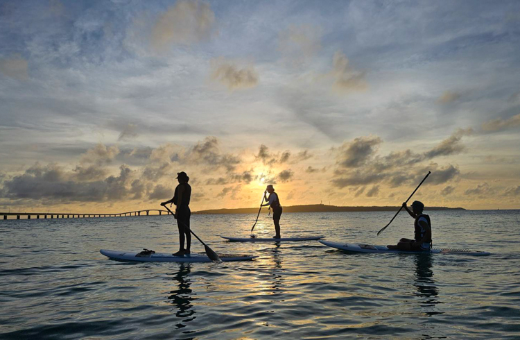 Gently drift on Miyako’s beautiful ocean as the sky slowly changes color, practicing yoga on a SUP board while playing with the water around you. Surrounded by the vast sky and pristine nature, this is a truly special moment that will move your heart.