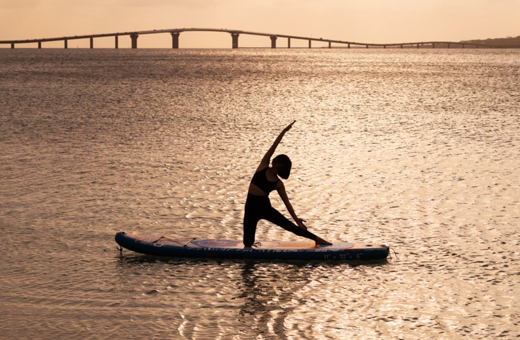 Originating in Hawaii, SUP Yoga is practiced on a board larger than a surfboard while floating on the water. Unlike on solid ground, the gentle movement of the water helps strengthen your core and offers a unique sense of deep relaxation.