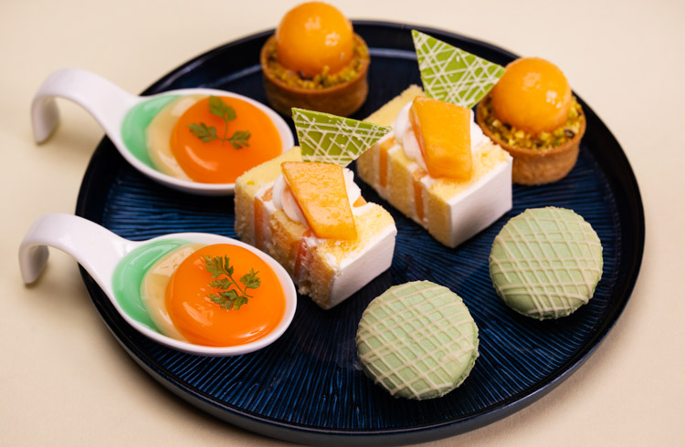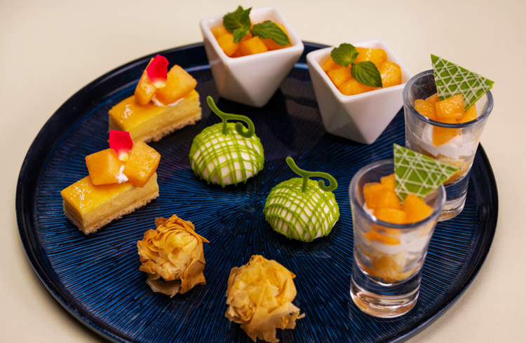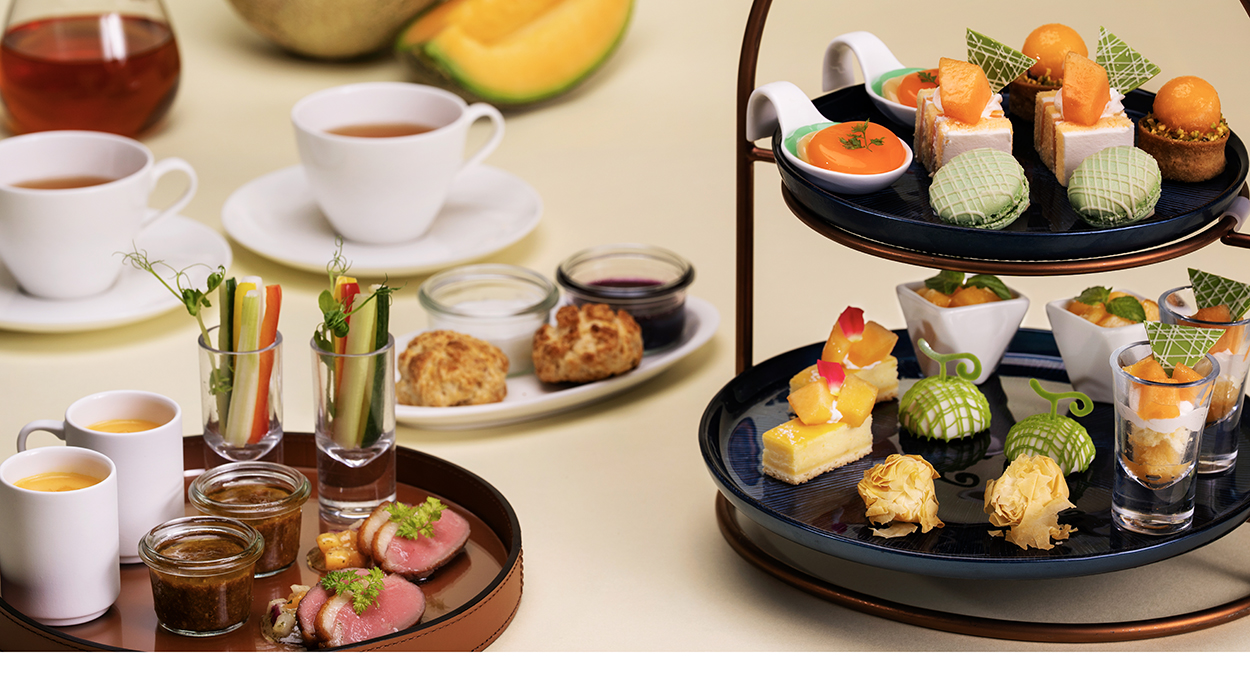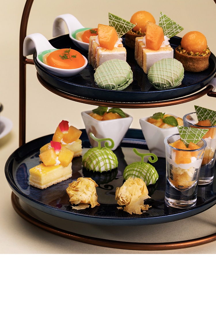 9種のスイーツやセイボリー3種にメロンの魅力をちりばめ、彩り豊かなひとときを演出します。