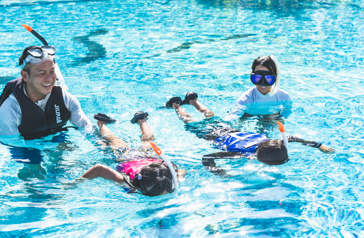 期間限定で屋外ファミリープールが温水プールになり、ヤシの木を眺めながら宮古島ならではの冬のプール体験を楽しめます。